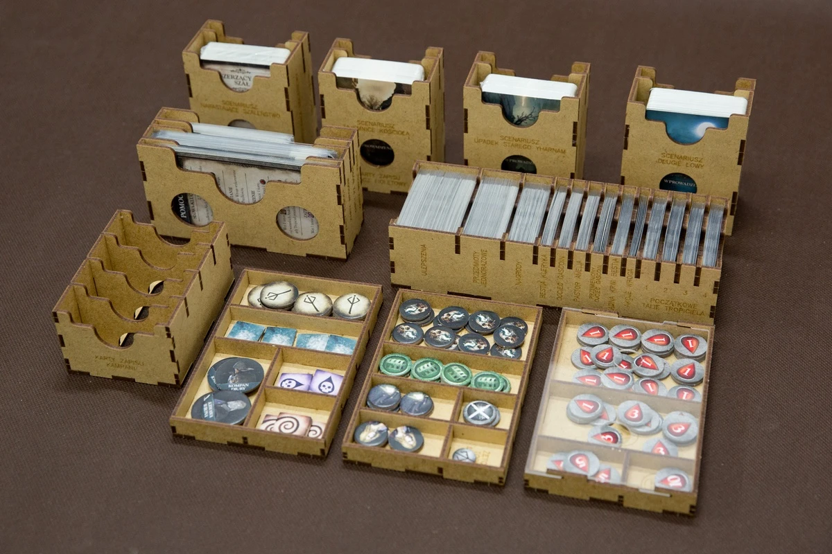 Cena obejmuje elementy insertu do samodzielnego sklejenia. Insert wykonany jest ze sklejki lub HDF-u o grubości 3 mm, nie jest malowany. Do sklejenia wymagany jest klej WIKOL, który możesz kupić tutaj. Komponenty gry przedstawione na zdjęciach nie wchodzą w skład sprzedawanego zestawu. Produkt może różnić się kolorystycznie od widocznego na zdjęciach – zależy to od partii sklejki lub HDF-u. Na zdjęciach insert jest wykonany z HDF-u. Czym się różni HDF od sklejki przeczytasz tutaj.