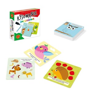Zabawka edukacyjna, dedykowana dzieciom przygotowującym się do nauki pisania. Rysowanie Zmazywanie - Zwierzątka to zestaw 17 dwustronnych plansz, na których znajdują się zadania na spostrzegawczość, myślenie, wyobraźnię i ćwiczenie zręczności manualnej. W zestawie znajduje się również pisak, którego ślad po użyciu, można łatwo zetrzeć dzięki czemu zabawę można powtarzać wielokrotnie. Poręczny rozmiar opakowania pozwala na zabranie zabawki ze sobą dosłownie wszędzie..